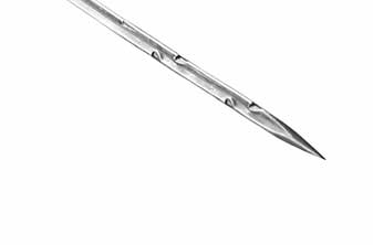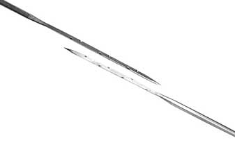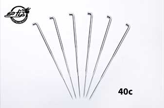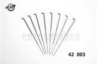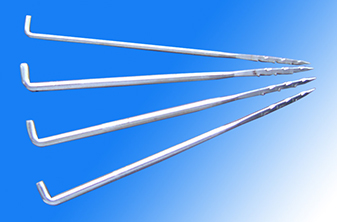 三維模壓成型的G型和GB型鉤刺可延長刺針的壽命。常用無紡刺針每一棱帶三個鉤刺,在一些用底布材料的特殊用途上,只在一棱或兩棱上帶鉤刺。彎柄方向可以是偏左或偏右以縱向或橫向保護底布材料,將損害減至最低,無紡刺針的方向視帶鉤刺棱邊的位置而定。
